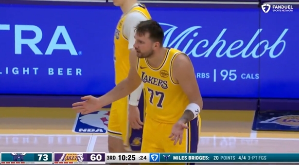 在第三节还剩10分25秒时,东契奇认为自己被犯规,找裁判理论吃到个人赛季第10个技犯。